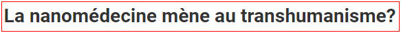 de la médecine par la nanotechnolgie. Transhumanisme en vue.par Liliane