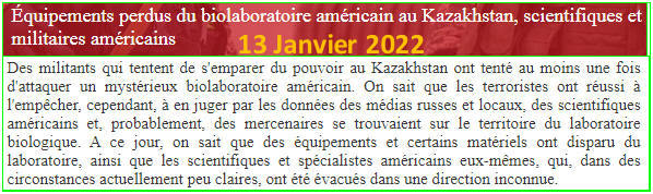 d'un laboratoire biologique au Kazakhstan lors d'une tentative de coup