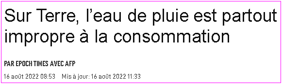L'eau de pluie sur Terre est partout impropre à la consommation à cause